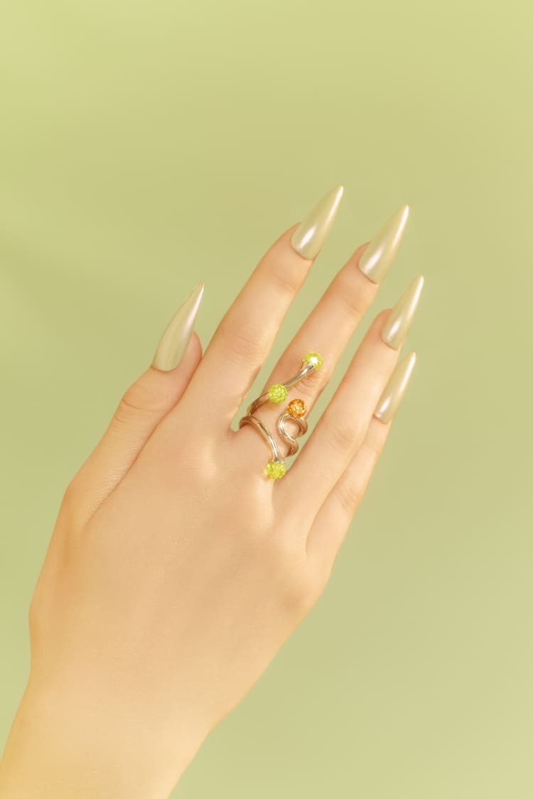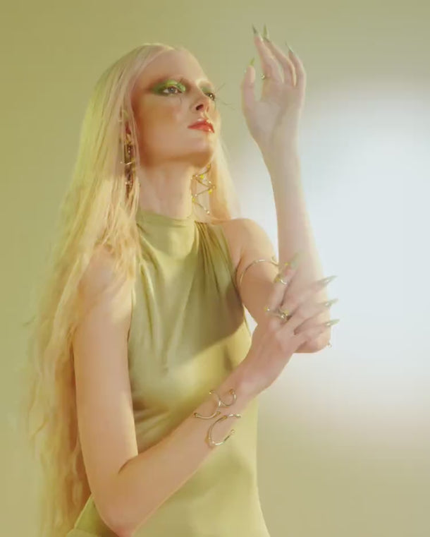 Jewellery that flows and moves like the roots of the earth adorned with crystal stones in earthy browns and vibrant greens that reflect the wild beauty of the forest. Let these bold, nature-inspired pieces become a part of you, integrating seamlessly with your style.