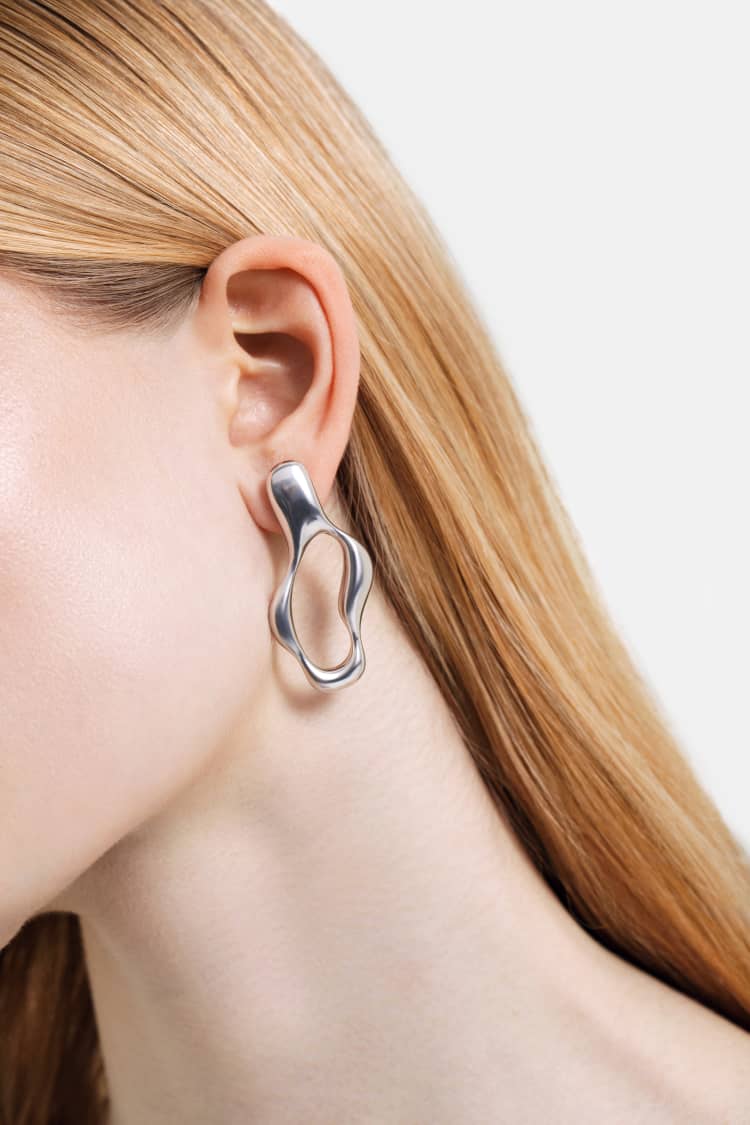 boucles d’oreilles créoles liquides en argent