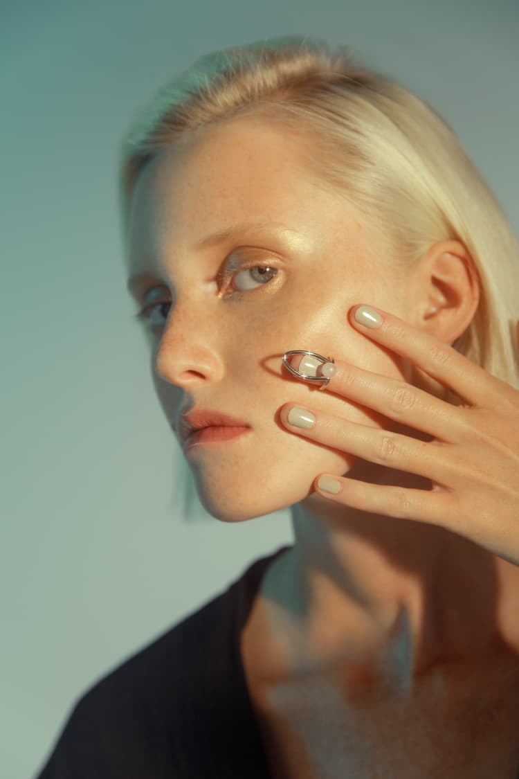Bague clou en argent sertie de pierre