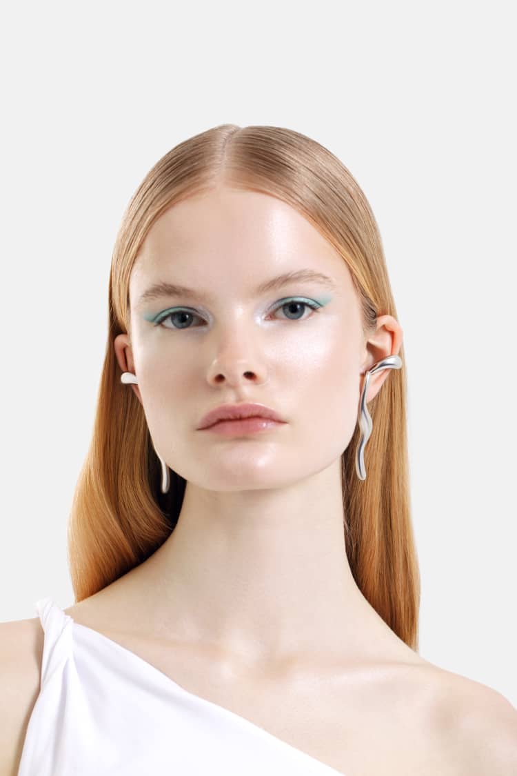 boucles d’oreilles liquides en argent qui entourent les oreilles