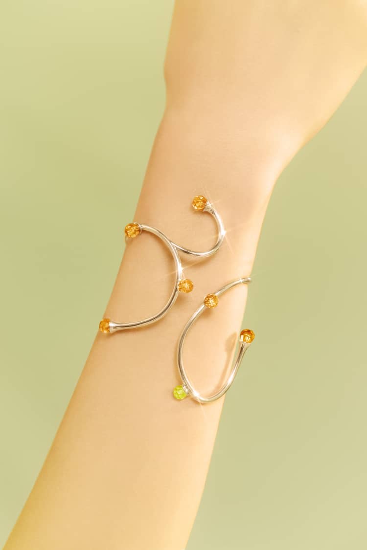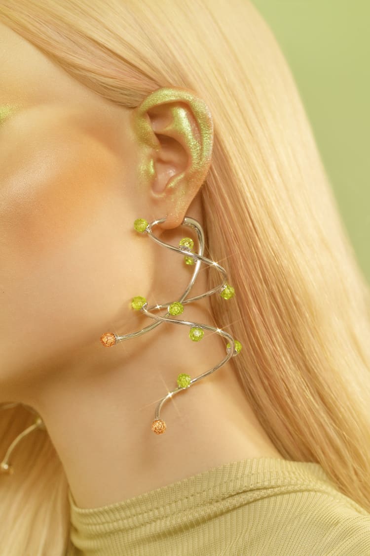 Jewellery that flows and moves like the roots of the earth adorned with crystal stones in earthy browns and vibrant greens that reflect the wild beauty of the forest. Let these bold, nature-inspired pieces become a part of you, integrating seamlessly with your style.